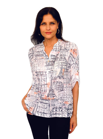 This Mandarin collar top brings a touch of far east to your wardrobe. Rolled sleeves with Tab & button detail. Textured Light fabric, cool, wrinkle free and washable. A must have for any trip. Generous fit - please refer to sizing guide.